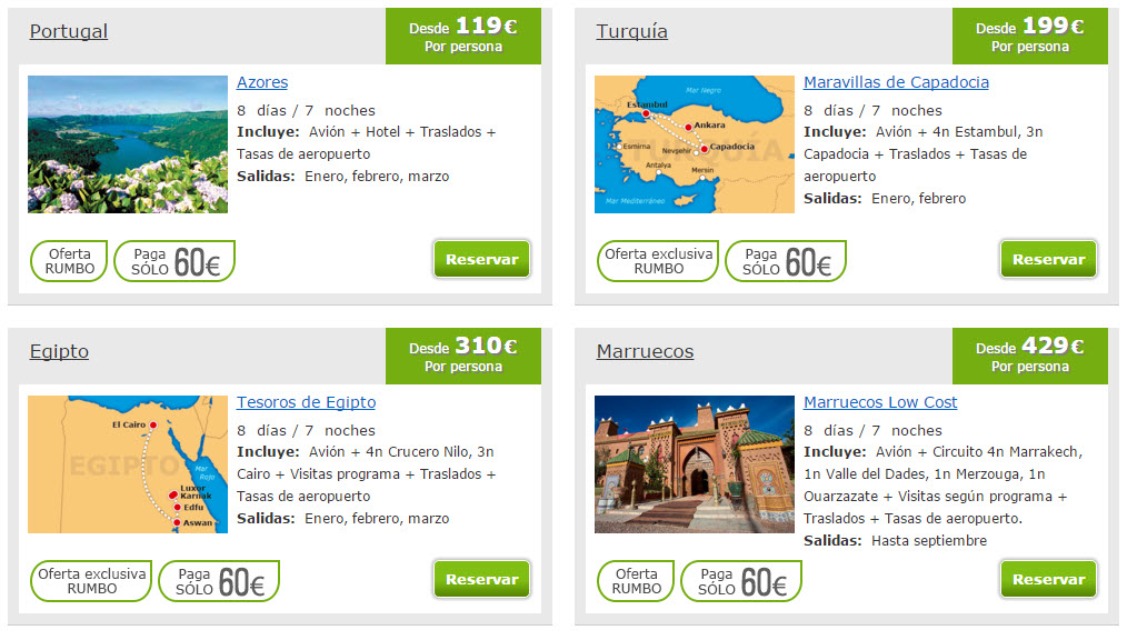 Rumbo: ofertas en viajes organizados con reserva mínima
